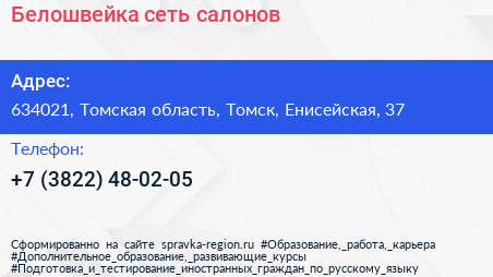Белошвейка, сеть салонов по адресу 634021, Томская область, Томск, Енисейская, 37 в дальнейшем Организация, размещена в следующих категориях: