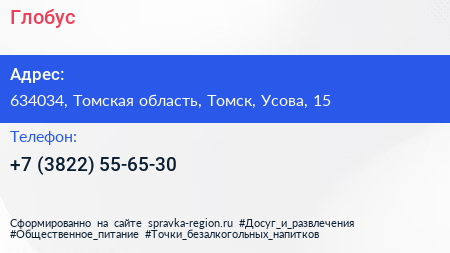 Глобус по адресу 634034, Томская область, Томск, Усова, 15 в дальнейшем Организация, размещена в следующих категориях: