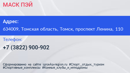 МАСК-ПЭЙ по адресу 634009, Томская область, Томск, проспект Ленина, 110 в дальнейшем Организация, размещена в следующих категориях: