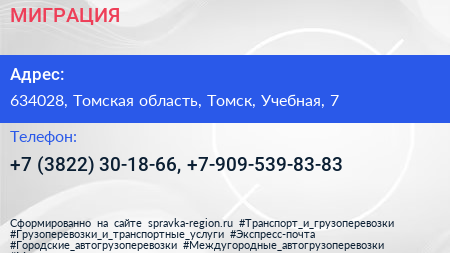 МИГРАЦИЯ по адресу 634028, Томская область, Томск, Учебная, 7 в дальнейшем Организация, размещена в следующих категориях: