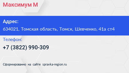 Максимум-М по адресу 634021, Томская область, Томск, Шевченко, 41а ст4 в дальнейшем Организация, размещена в следующих категориях: