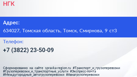 НГК по адресу 634027, Томская область, Томск, Смирнова, 9 ст3 в дальнейшем Организация, размещена в следующих категориях: