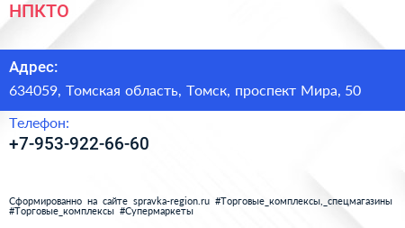 НПКТО по адресу 634059, Томская область, Томск, проспект Мира, 50 в дальнейшем Организация, размещена в следующих категориях: