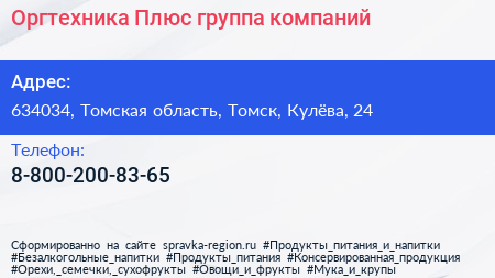 Оргтехника Плюс, группа компаний по адресу 634034, Томская область, Томск, Кулёва, 24 в дальнейшем Организация, размещена в следующих категориях: