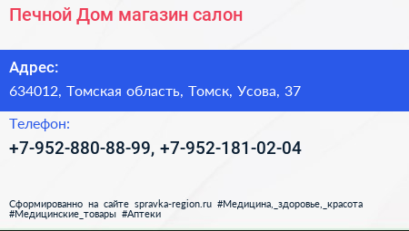 Печной Дом, магазин-салон по адресу 634012, Томская область, Томск, Усова, 37 в дальнейшем Организация, размещена в следующих категориях: