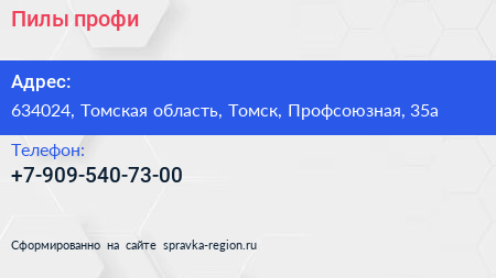 Пилы-профи по адресу 634024, Томская область, Томск, Профсоюзная, 35а в дальнейшем Организация, размещена в следующих категориях: