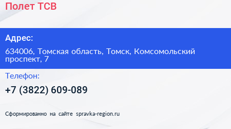 Полет ТСВ по адресу 634006, Томская область, Томск, Комсомольский проспект, 7 в дальнейшем Организация, размещена в следующих категориях:
