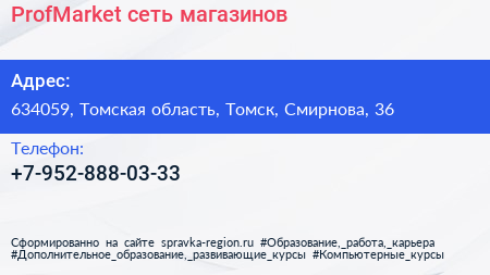 ProfMarket, сеть магазинов по адресу 634059, Томская область, Томск, Смирнова, 36 в дальнейшем Организация, размещена в следующих категориях: