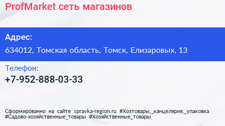 ProfMarket, сеть магазинов по адресу 634012, Томская область, Томск, Елизаровых, 13 в дальнейшем Организация, размещена в следующих категориях:
