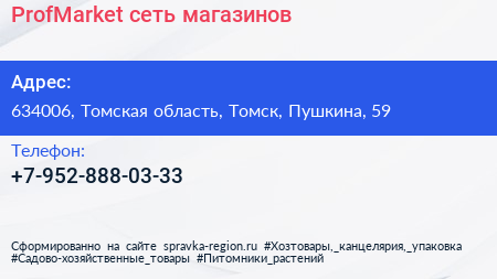 ProfMarket, сеть магазинов по адресу 634006, Томская область, Томск, Пушкина, 59 в дальнейшем Организация, размещена в следующих категориях: