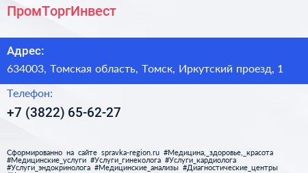ПромТоргИнвест по адресу 634003, Томская область, Томск, Иркутский проезд, 1 в дальнейшем Организация, размещена в следующих категориях: