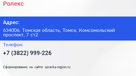 Ролекс по адресу 634006, Томская область, Томск, Комсомольский проспект, 7 ст2 в дальнейшем Организация, размещена в следующих категориях: