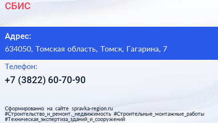 СБИС по адресу 634050, Томская область, Томск, Гагарина, 7 в дальнейшем Организация, размещена в следующих категориях: