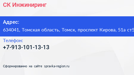 СК Инжиниринг по адресу 634041, Томская область, Томск, проспект Кирова, 51а ст5 в дальнейшем Организация, размещена в следующих категориях: