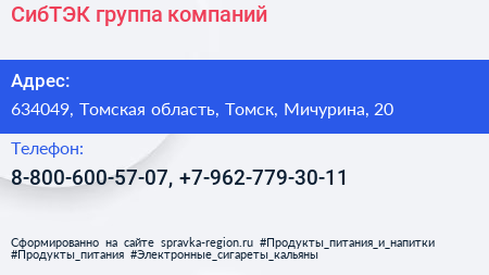 СибТЭК, группа компаний по адресу 634049, Томская область, Томск, Мичурина, 20 в дальнейшем Организация, размещена в следующих категориях: