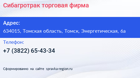 Сибагротрак, торговая фирма по адресу 634015, Томская область, Томск, Энергетическая, 6а в дальнейшем Организация, размещена в следующих категориях: