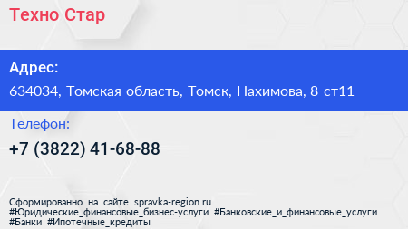 Техно Стар по адресу 634034, Томская область, Томск, Нахимова, 8 ст11 в дальнейшем Организация, размещена в следующих категориях: