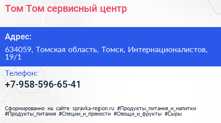 Том-Том, сервисный центр по адресу 634059, Томская область, Томск, Интернационалистов, 19/1 в дальнейшем Организация, размещена в следующих категориях: