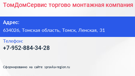 ТомДомСервис, торгово-монтажная компания по адресу 634026, Томская область, Томск, Ленская, 31 в дальнейшем Организация, размещена в следующих категориях: