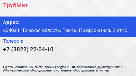 ТрубМет по адресу 634024, Томская область, Томск, Профсоюзная, 2 ст46 в дальнейшем Организация, размещена в следующих категориях: