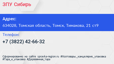 ЗПУ-Сибирь по адресу 634028, Томская область, Томск, Тимакова, 21 ст9 в дальнейшем Организация, размещена в следующих категориях: