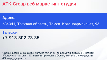 ATK Group, веб-маркетинг студия по адресу 634041, Томская область, Томск, Красноармейская, 96 в дальнейшем Организация, размещена в следующих категориях:
