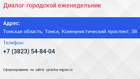Диалог, городской еженедельник по адресу Томская область, Томск, Коммунистический проспект, 38 в дальнейшем Организация, размещена в следующих категориях: