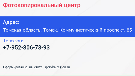 Фотокопировальный центр по адресу Томская область, Томск, Коммунистический проспект, 85 в дальнейшем Организация, размещена в следующих категориях: