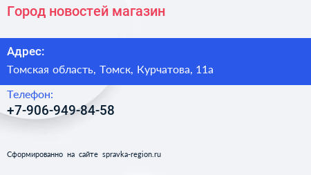 Город новостей, магазин по адресу Томская область, Томск, Курчатова, 11а в дальнейшем Организация, размещена в следующих категориях: