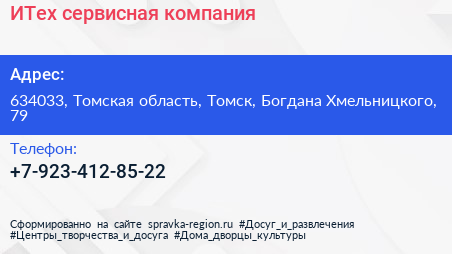 ИТех, сервисная компания по адресу 634033, Томская область, Томск, Богдана Хмельницкого, 79 в дальнейшем Организация, размещена в следующих категориях: