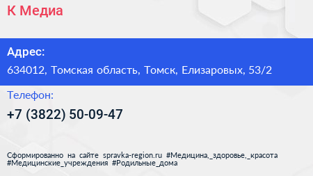 К-Медиа по адресу 634012, Томская область, Томск, Елизаровых, 53/2 в дальнейшем Организация, размещена в следующих категориях: