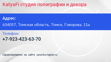 KatyаFi, студия полиграфии и декора по адресу 634057, Томская область, Томск, Говорова, 11а в дальнейшем Организация, размещена в следующих категориях: