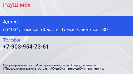 РауШ мбх по адресу 634034, Томская область, Томск, Советская, 80 в дальнейшем Организация, размещена в следующих категориях:
