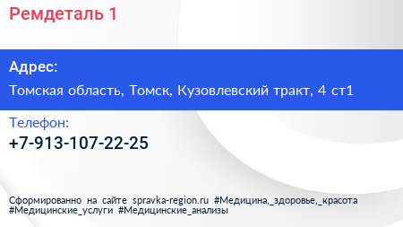 Ремдеталь-1 по адресу Томская область, Томск, Кузовлевский тракт, 4 ст1 в дальнейшем Организация, размещена в следующих категориях:
