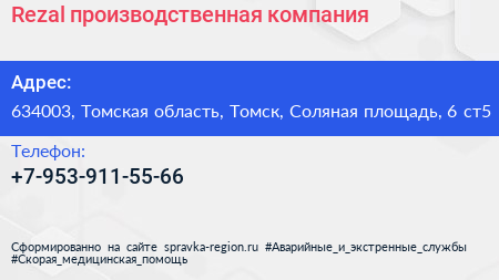 Rezal, производственная компания по адресу 634003, Томская область, Томск, Соляная площадь, 6 ст5 в дальнейшем Организация, размещена в следующих категориях: