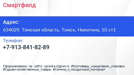 Смартфилд по адресу 634029, Томская область, Томск, Никитина, 10 ст1 в дальнейшем Организация, размещена в следующих категориях: