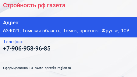 Стройность.рф, газета по адресу 634021, Томская область, Томск, проспект Фрунзе, 109 в дальнейшем Организация, размещена в следующих категориях: