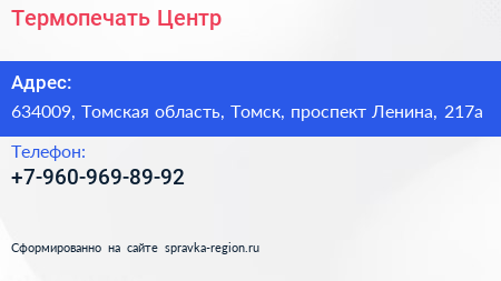 Термопечать-Центр по адресу 634009, Томская область, Томск, проспект Ленина, 217а в дальнейшем Организация, размещена в следующих категориях: