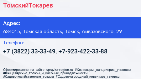 ТомскийТокарев по адресу 634015, Томская область, Томск, Айвазовского, 29 в дальнейшем Организация, размещена в следующих категориях: