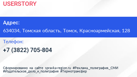 USERSTORY по адресу 634034, Томская область, Томск, Красноармейская, 128 в дальнейшем Организация, размещена в следующих категориях: