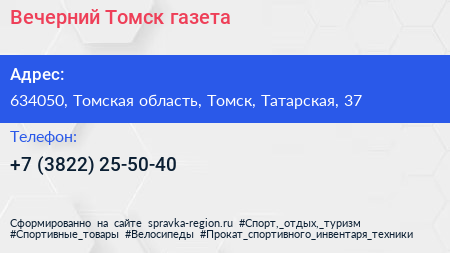Вечерний Томск, газета по адресу 634050, Томская область, Томск, Татарская, 37 в дальнейшем Организация, размещена в следующих категориях:
