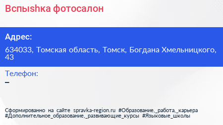#Вспыshка, фотосалон по адресу 634033, Томская область, Томск, Богдана Хмельницкого, 43 в дальнейшем Организация, размещена в следующих категориях:
