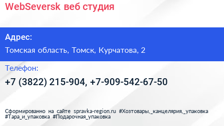 WebSeversk, веб-студия по адресу Томская область, Томск, Курчатова, 2 в дальнейшем Организация, размещена в следующих категориях: