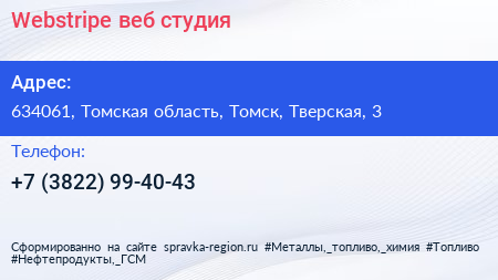 Webstripe, веб-студия по адресу 634061, Томская область, Томск, Тверская, 3 в дальнейшем Организация, размещена в следующих категориях: