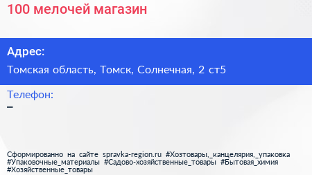 100 мелочей, магазин по адресу Томская область, Томск, Солнечная, 2 ст5 в дальнейшем Организация, размещена в следующих категориях: