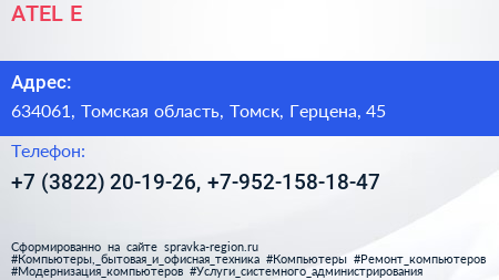 ATEL`E по адресу 634061, Томская область, Томск, Герцена, 45 в дальнейшем Организация, размещена в следующих категориях:
