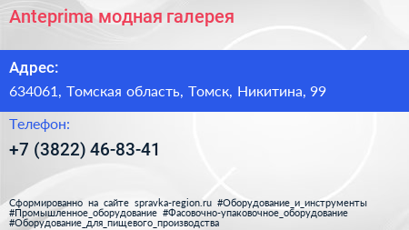 Anteprima, модная галерея по адресу 634061, Томская область, Томск, Никитина, 99 в дальнейшем Организация, размещена в следующих категориях: