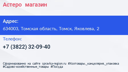 Астеро+, магазин по адресу 634003, Томская область, Томск, Яковлева, 2 в дальнейшем Организация, размещена в следующих категориях:
