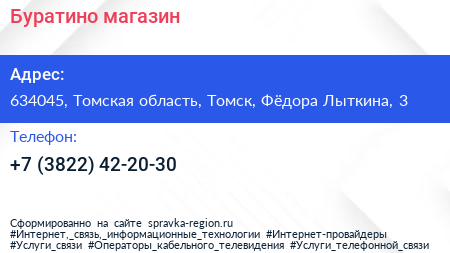 Буратино, магазин по адресу 634045, Томская область, Томск, Фёдора Лыткина, 3 в дальнейшем Организация, размещена в следующих категориях:
