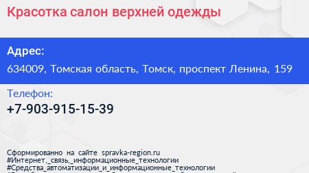 Красотка, салон верхней одежды по адресу 634009, Томская область, Томск, проспект Ленина, 159 в дальнейшем Организация, размещена в следующих категориях: